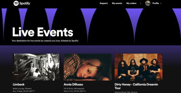 - 随着现场音乐在封锁后复苏,Spotify开始涉足音乐会门票业务