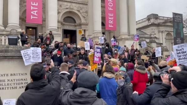 - 周六,抗议者在泰特英国美术馆外因变装皇后讲故事的活【详情】