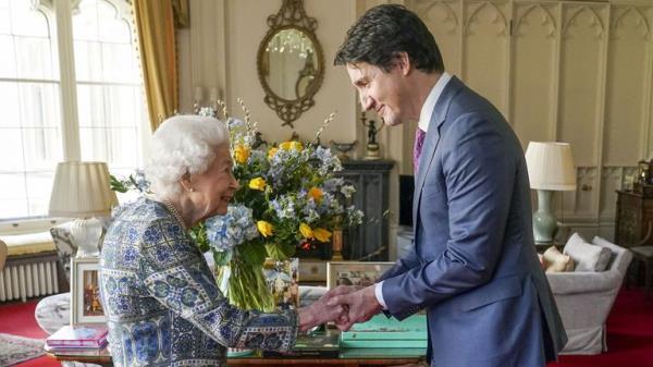 - 女王与加拿大总理贾斯廷·特鲁多进行了自感染COVI以来的首次面对面接触