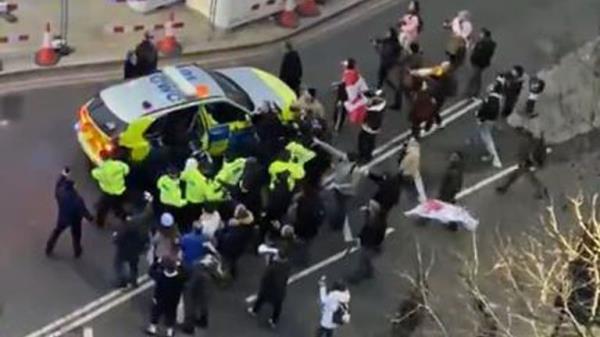 - 基尔·斯塔默爵士在被高喊“吉姆”的抗议者包围后,迅速挤进了警车后座