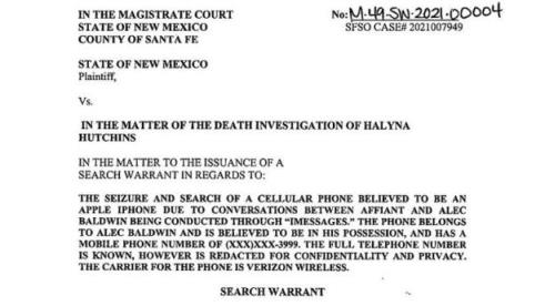 - 亚历克·鲍德温:圣达菲法院发布搜查令,搜查一名演员的手机