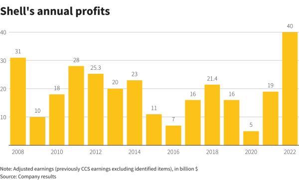 - 壳牌2022年利润翻倍多,达到创纪录的400亿美元