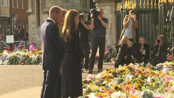 - 威廉、哈里、凯特和梅根一起瞻仰女王