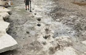 - 美国发现1亿年前恐龙足迹 因严重干旱而暴露出来