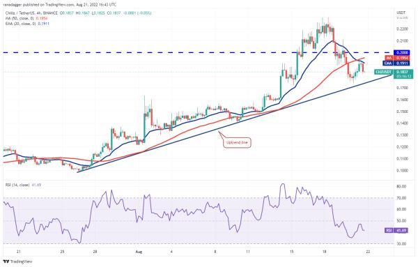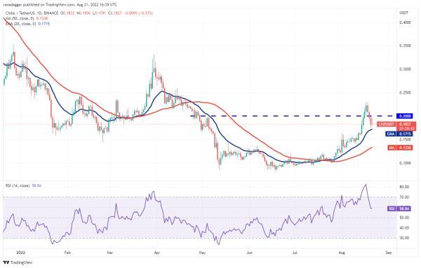 一个次要的积极因素是,多头试图守住20日均线(0.17美元),并将价格推至0.20美元以上。如果他们成功了,市场人气仍然是积极的,这表明交易员正在下行买入。如果多头突破这一障碍,CHZ/USDT可以获得动能,并移动至0.26美元。