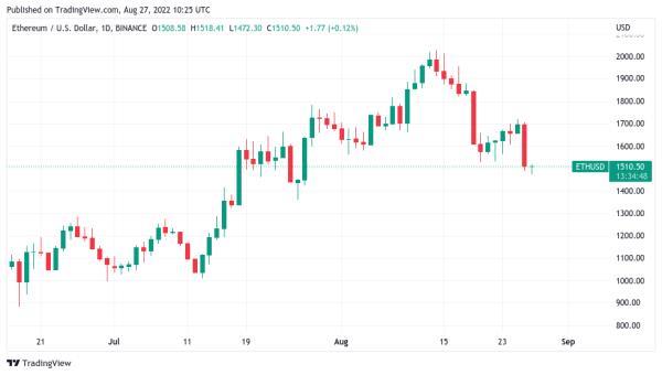 截至8月27日,ETH/美元已突破1500美元,抹去了长达一个月的涨势。受欢迎的交易商Crypto Ed发出了新的警告。