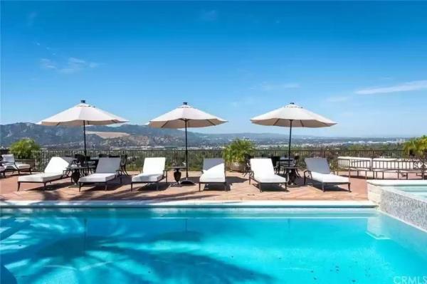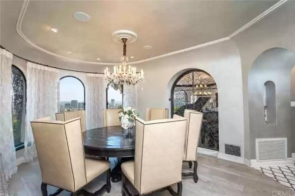 这座别墅最初建于1929年,拥有洛杉矶、格兰岱尔和伯班克的景色。突出的细节包括赤陶瓦、拱形门廊和多个通往天井的入口。
