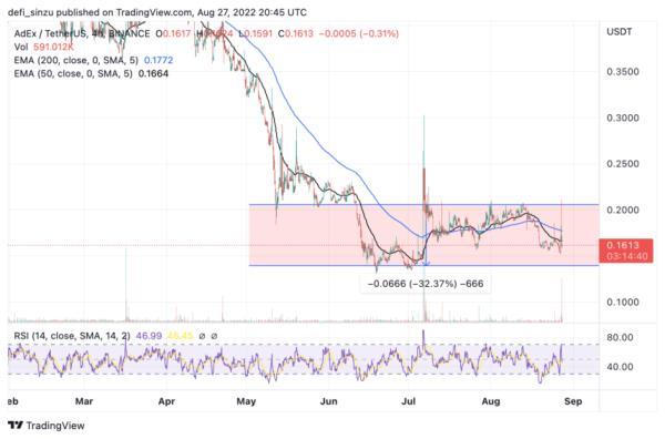 ADX需要突破并关闭4小时区间通道,才能接近0.2美元。如果ADX价格卡在这个通道,我们可能会检查价格范围,重新测试支撑区域。
