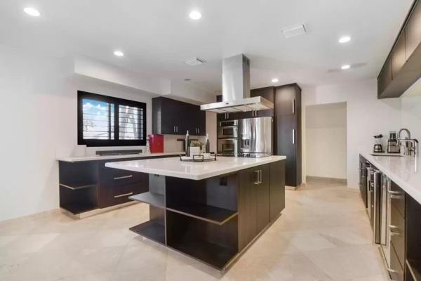 这座住宅占地三分之一英亩(约1.35公顷),白色的现代外观突出了热带景观,带有超长的加热游泳池和水疗中心。