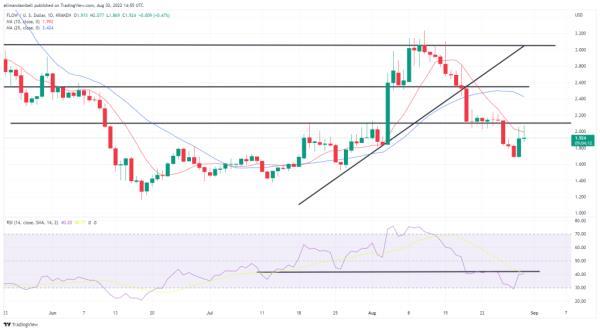 今天的飙升导致FLOW/美元几乎与关键阻力位2.10美元发生碰撞,造成价格走势的不确定性。
