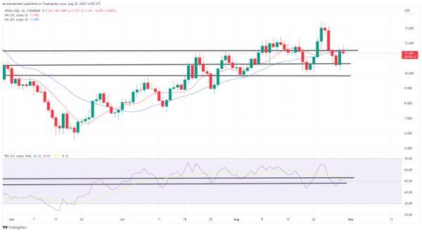 在撰写本文时,Cosmos目前的交易价格为11.25美元,低于前面提到的上限价格。
