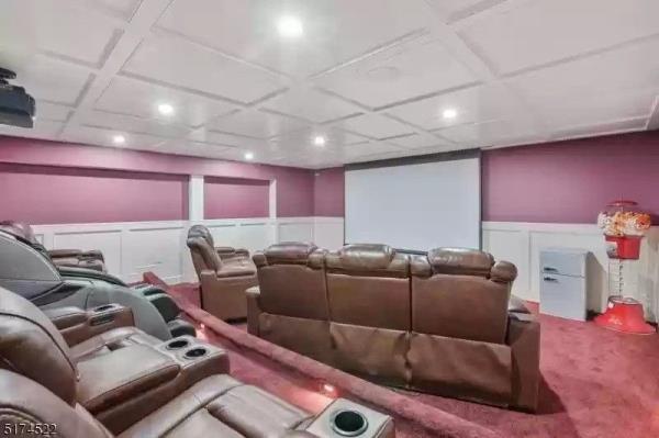 低层的豪华细节包括隔音影院、健身房、发廊和游戏室。外面是一片绿油油的围栏草坪,露台上有一个烧烤台、一个用餐区和一座露台。