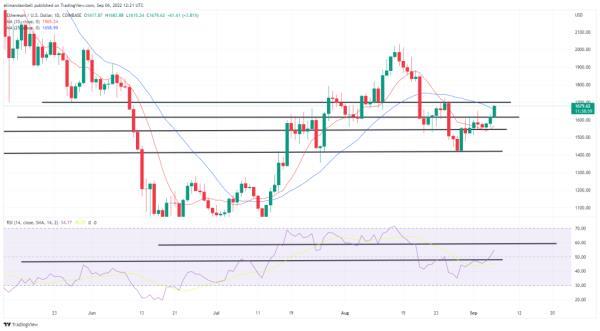 这标志着以太坊自8月26日以来的最高价格,使代币更接近1700美元的上限。