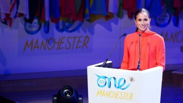 他们的曼彻斯特之行是自6月女王登基60周年以来,这对夫妇首次在英国露面,这也是梅根离开王室角色后在这里的首次演讲。