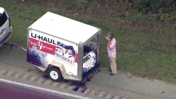 一辆载有服装染料的U-Haul拖车发生车祸,把染料洒得到处都是,南卡罗来纳州的一条高速公路被暂时涂成了粉色(和蓝色)。