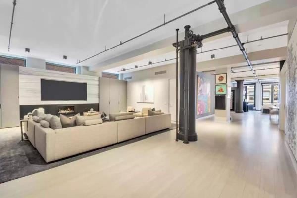 原始的元素,如裸露的管道和柱子,保持了20世纪初的SoHo阁楼氛围。其他贴心的更新还包括集成音响系统、中央空调、定制照明和电动窗帘。