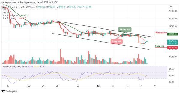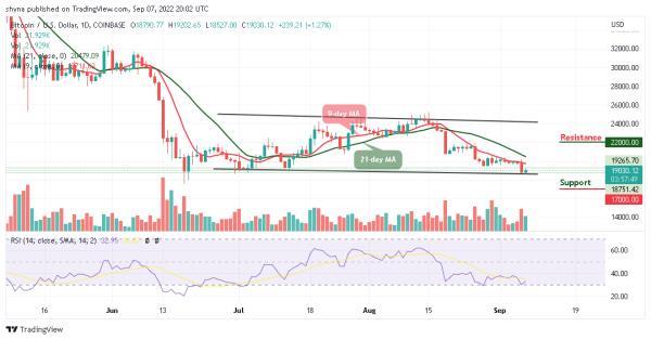 在撰写本文时,BTC/美元在上升至9天和21日移动均线后,交易价格为19030美元。第一个数字资产也被拉回了目前的交易,如果熊市回归市场,它可能会下跌。