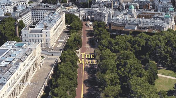 这条路大约1800米长,也就是1英里多一点,途经伦敦最著名的两条大道:林荫道和白厅。