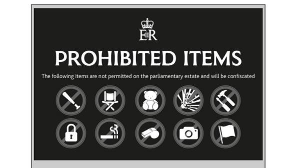 禁止携带尖锐物品、喷漆、挂锁、链条、攀爬装备和其他任何危险物品。