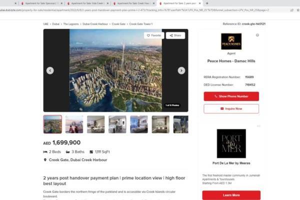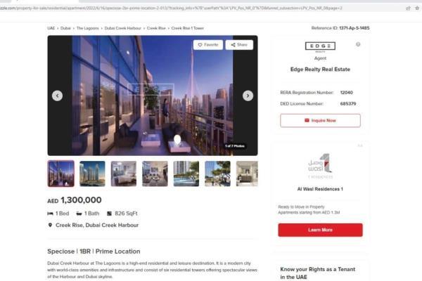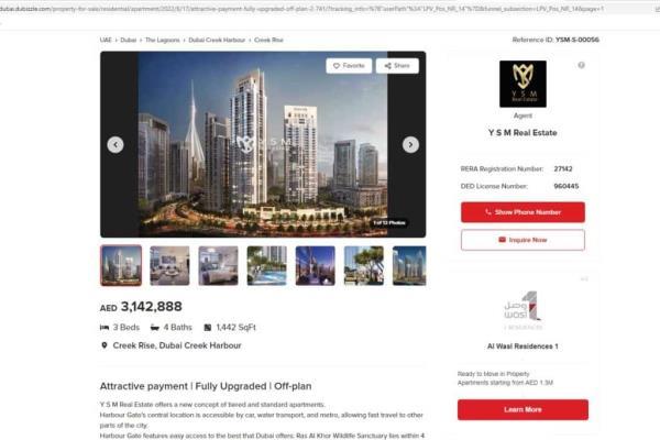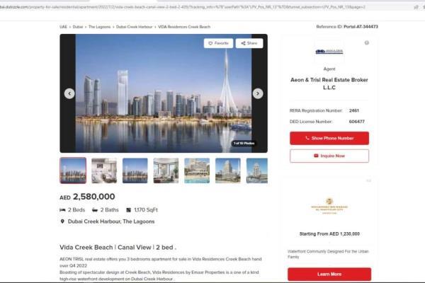 “所有这些图片都是由私人卖家提供的,他们对迪拜河港的主社区有绝对的信心。我们的代理商百分之百遵守了与克里克港社区的私人卖家和房东的营销协议,”Fam Properties首席执行官Firas Al Msaddi说。