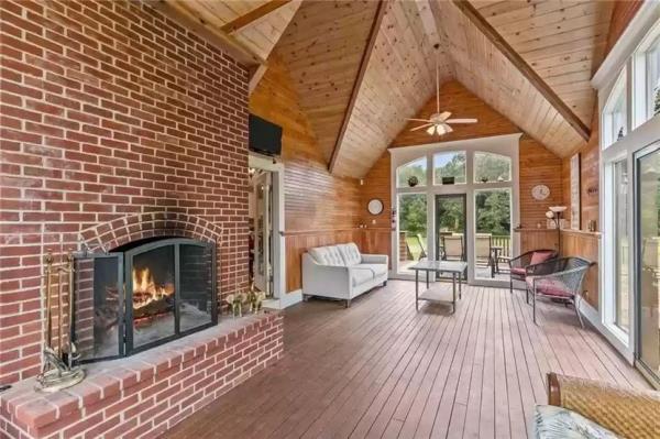 户外生活空间是为娱乐而设计的,配备有厨房和用餐区,燃木壁炉和内置烧烤架。这里还有一个带三个隔间的谷仓,还有一处私人船坞的地役权。