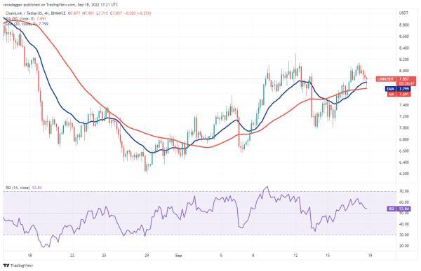 如果多头未能将价格推至8.20美元以上,空头可能会幻想这个机会,并试图突破移动平均线以下。可能会对熊有利。这对货币可能首先跌至7.50美元,然后跌至7美元。