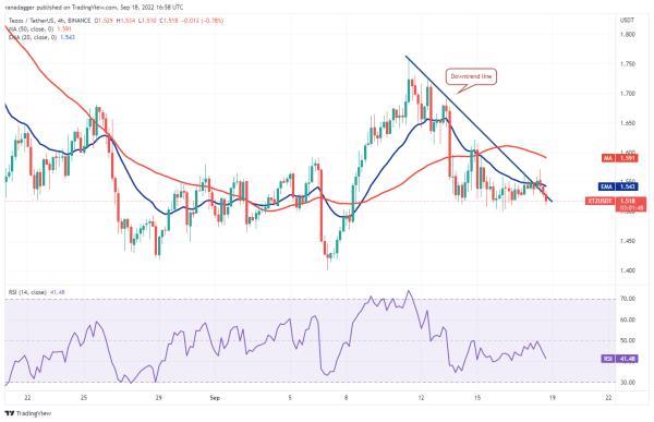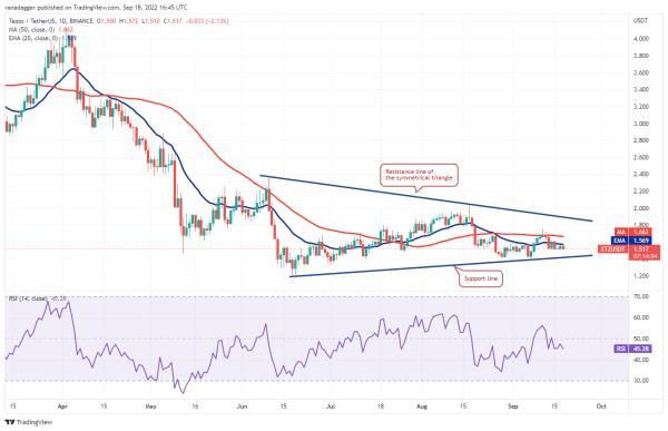 9月13日,泰佐斯(Tezos)跌破20日均线(1.57美元),但空头未能将股价推至对称三角形的支撑线。这表明买家在继续下跌,并没有等待更深的调整进场。这会增加你在短期内恢复的机会。