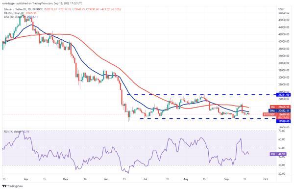 如果价格继续跌破19,320美元,BTC/USDT可能会跌至18,510美元。预计买家将积极坚持这一水平。