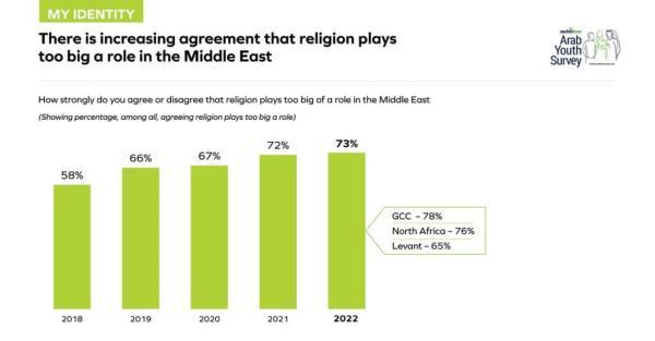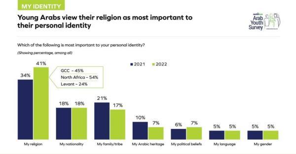调查结果显示,41%的阿拉伯青年表示,他们的宗教对他们的个人身份最重要,比2021年增加了7%。
