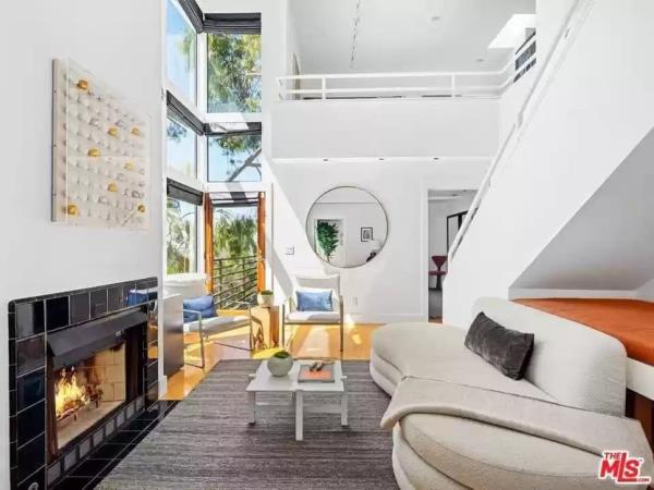 这栋全白住宅的开放式布局,拥有一间时髦的两层客厅,内有一座黑色瓷砖壁炉。在这个级别上还可以找到两个主套件。