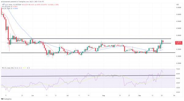 在今天盘中触及0.3774美元的低点后,瑞波币兑美元在峰值当天飙升至0.4215美元的高点。