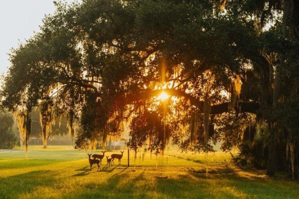 多年来,这家人在牧场周围购买了更多的土地。如今,这里的大部分土地都被茂密的森林覆盖。奶牛懒洋洋地躺在长满青苔的橡树树荫下,白尾鹿在灌木丛中穿行。