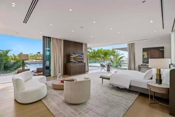 这地方看起来确实很贵。这座占地10278平方英尺的豪宅建于2017年,有一个令人瞠目结舌的大房间,天花板高达22英尺。从桃花心木的前门,你可以一直看到水面,巨大的窗户也提供了后院绿洲的一瞥。