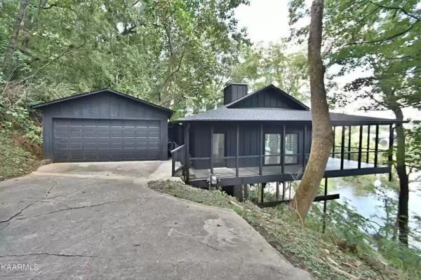 这座三卧室的住宅占地2.3英亩,俯瞰霍尔斯顿河,有许多滑梯,可以欣赏周围的自然美景。环绕门廊也提供壮观的水景。