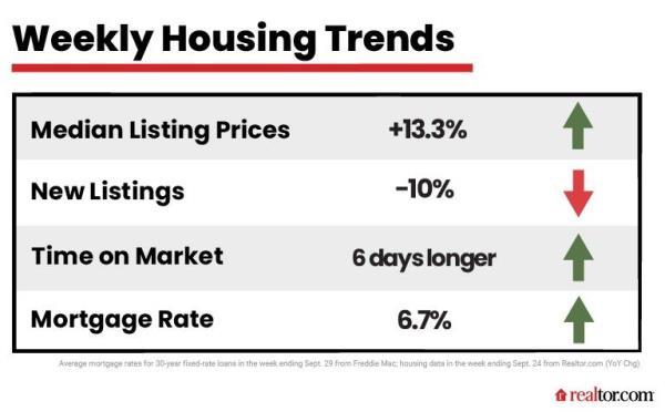 “本周的房地产市场怎么样?”是我们的每周专栏,在这里我们密切关注四个关键指标的脉搏:房价、挂牌数量、上市时间和抵押贷款利率。截至9月24日的一周,对买家来说情况并不乐观,尤其是在借款方面。