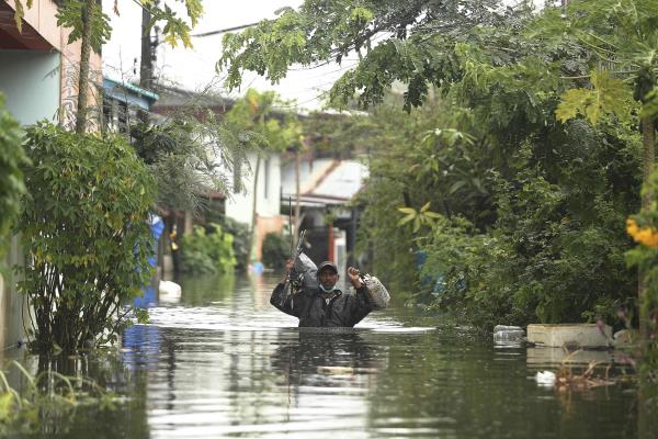 曼谷(美联社)——热带低气压带来强降雨,导致树木被吹倒,导致至少一人死亡,周四,高达齐腰高的洪水淹没了泰国一些临河社区和其他地区。