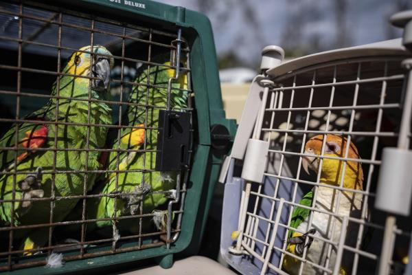 救援人员聚集在一起拯救被伊恩困住的275只鹦鹉