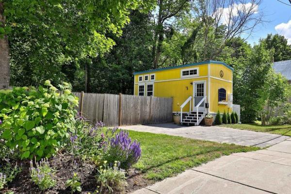 娇小完美:这是我们见过的最优雅的小房子之一,这座399平方英尺的美丽房子拥有豪华的功能,比如配有高端家电的完整厨房、壁炉、酒吧、法式双开门和淋浴间。