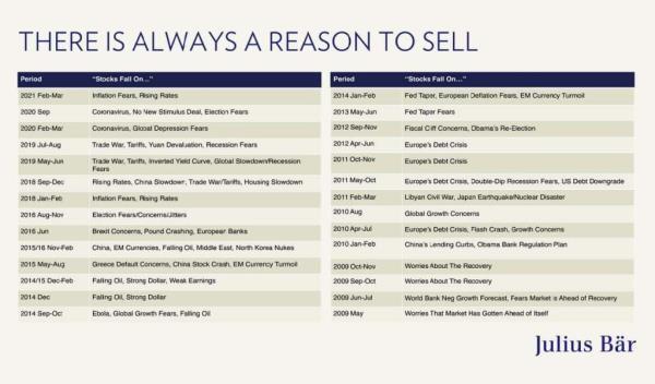 试图把握市场时机是最终的失败。如果这很容易,我们都将成为百万富翁,我们都不会再工作了。纠正总是在事后才明显。没有人知道它们何时会发生,什么会触发它们。