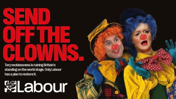 “保守党的鲁莽正在毁掉英国在世界舞台上的地位。只有工党有恢复的计划,”海报上写道。