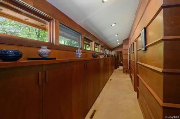它坐落在532英亩的克劳斯兰山地公园(Clausland Mountain Park)内,占地2.5英亩,意味着从家里的许多地方都可以看到树木。像赖特的其他乌森人一样,从外部可以看到很长的视线,平坦的屋顶,不对称的布局,木质镶板,切诺基红色的台面,以及一排排的高窗。