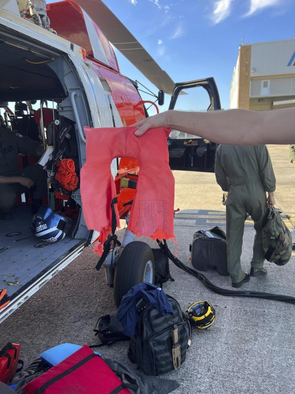 海岸警卫队副飞行员凯蒂·卡拉威中尉(Lt. Katy Caraway)在接受《今日秀》采访时表示,击退鲨鱼的两名队员“手上有多处撕裂伤,几乎到了骨头。”她补充说:“我们实际上找到了一件被鲨鱼咬穿的救生衣。”