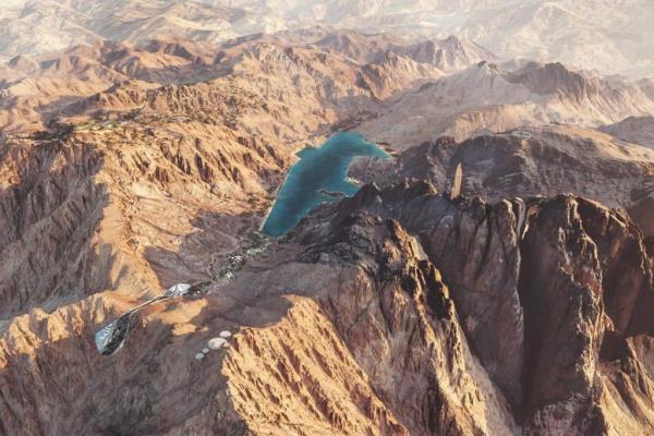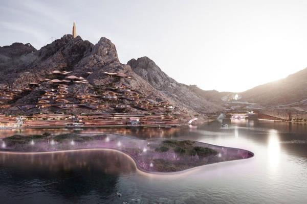NEOM说:“这些项目将位于俯瞰湖泊的滑雪场附近,旨在与周围的景观融为一体,以及拥有全景视野的豪华豪宅,旨在反映环境之美。”