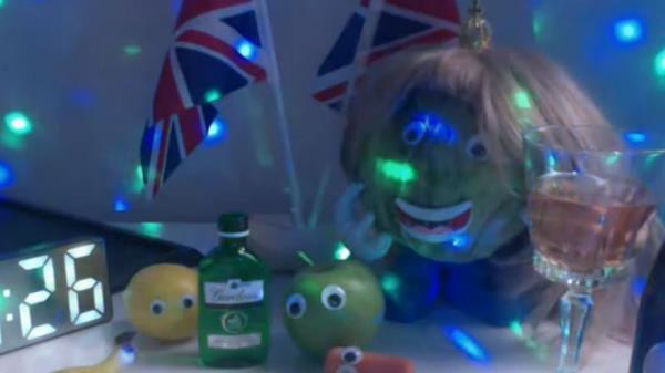在特拉斯女士辞职后,直播显示生菜依然健壮,戴着特拉斯风格的假发,微笑着站在一系列酒瓶和迪斯科灯中间。