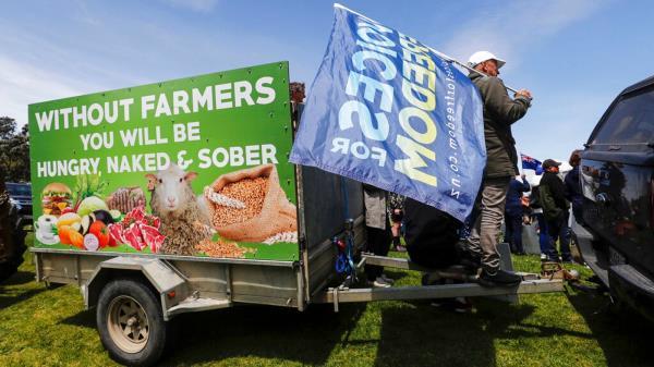 新西兰各地的农民开着拖拉机上高速公路和进城,抗议政府对农场动物打嗝时释放的温室气体征税的计划。