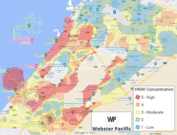 韦伯斯特太平洋公司的一份报告显示,高净值人士数量最多的前5个居民区分别是朱美拉第一、巴尔沙、朱美拉、阿拉伯牧场和塔尼亚。
