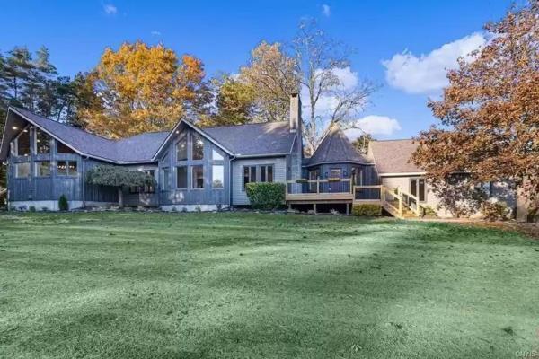这座占地3.5英亩,被农田包围的巨大的7182平方英尺的小屋可以舒适地容纳25人。主层设有一座石砌壁炉和两层落地窗。较低的一层带步入式厨房和两间办公室。