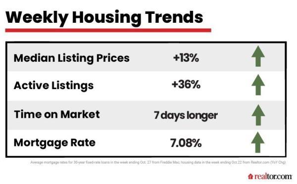 在截至10月27日的当周,30年期固定抵押贷款平均利率飙升至7.08%。据房地美称,这是自2002年4月以来20年来失业率首次突破7%的门槛。