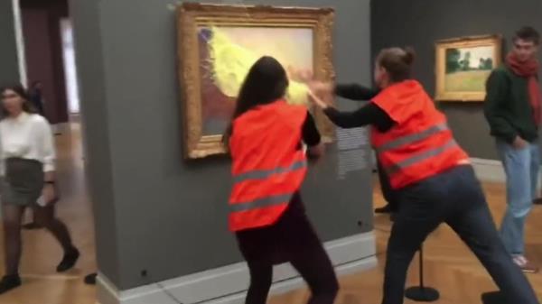 气候抗议者向德国莫奈的画作《Les Meules》投掷土豆泥