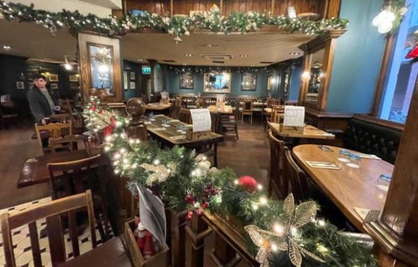 2021年12月18日,在英国伦敦,新冠肺炎大流行期间,一家酒吧餐厅的桌子空无一人。路透/彼得·尼科尔斯/文件的照片